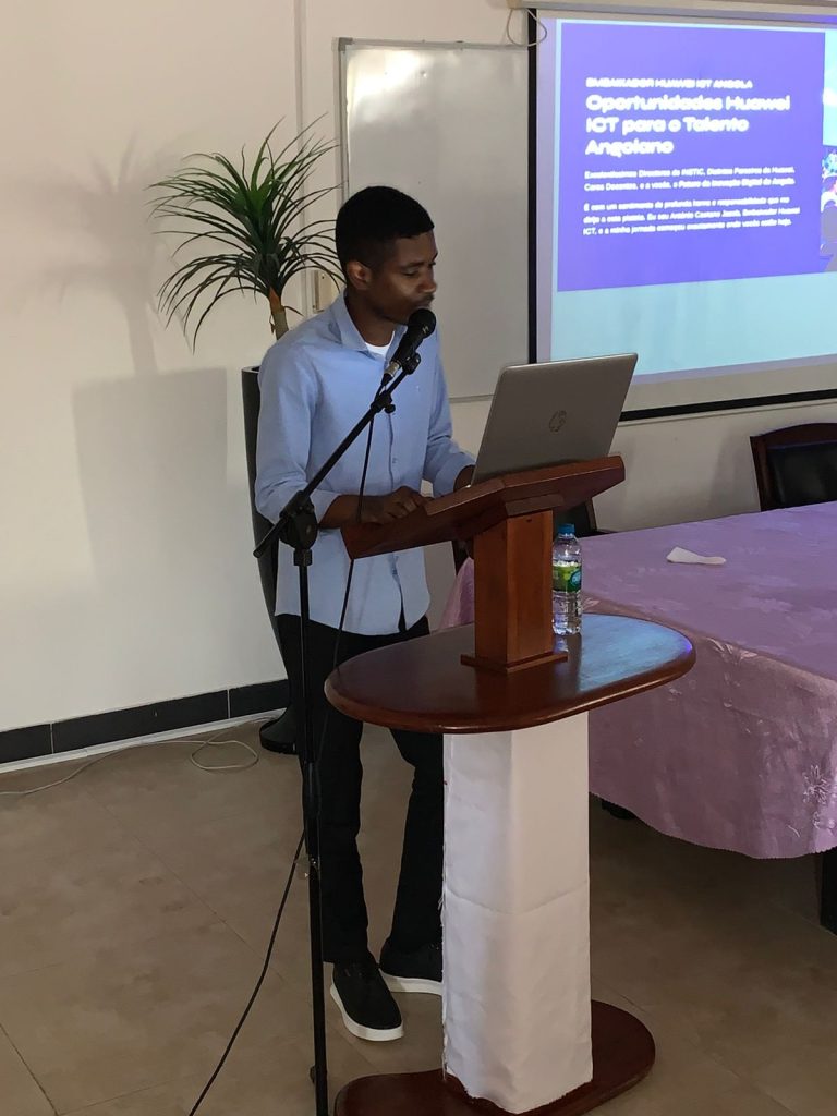 Durante o evento, o Eng. Luís Erivaldo destacou o compromisso da Huawei com a capacitação tecnológica de jovens angolanos e o fortalecimento do ecossistema digital nacional. António Caetano Jacob (actual estudante embaixador da ICT Academy no INSTIC) detalhou os programas da Huawei, salientando a Huawei ICT Competition, que oferece formação técnica, certificações profissionais e oportunidades de networking com especialistas da indústria tecnológica.